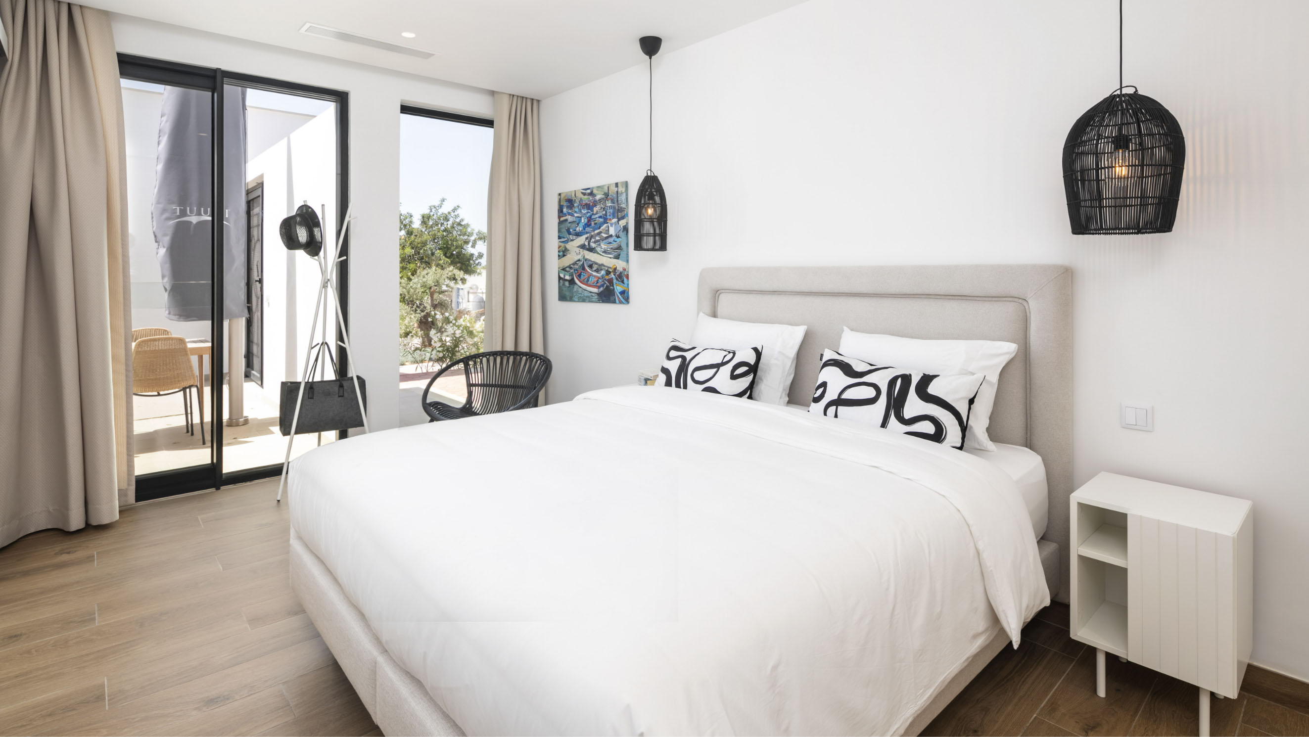 Ontdek een enclave van ongeëvenaarde sereniteit, waar elke villa met één of twee slaapkamers ontworpen is met open ruimtes die baden in natuurlijk licht. Stap vanuit uw eigen parkeerplaats naar uw privé patio. Een naadloze uitbreiding van uw woning. De perfecte plek om volledig te ontspannen. Binnen wacht een volledig uitgeruste keuken, compleet met vaatwasser, wasmachine, oven en kookplaat, die moeiteloos overgaan in prachtig ingerichte woonruimte met buitenterrassen die profiteren van het prachtige uitzicht op de kustlijn. Voor uw comfort is airconditioning beschikbaar in elke villa, waardoor een aangenaam verblijf gegarandeerd is, ongeacht het seizoen.